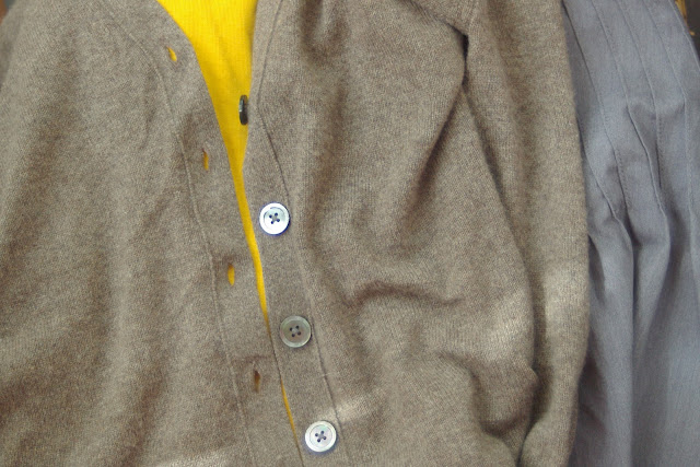 I was especially thrilled because this supports #10 on my list of things to do - no new clothes for a year. So now, even if I never succeed in making my own clothes, I at least know that I can find Banana Republic Italian cashmere cardigans in perfect condition for, um, $2.99! What?!